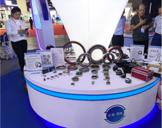 在今年的中國工博會上河北宇捷電機科技有限公司為大家主要展示了2大類型4個系列的電機產(chǎn)品,分別為有刷直流力矩電機里的NH-LYX系列稀土永磁直流力矩電機,和無刷直驅(qū)電機無刷直驅(qū)電機包括DDSM系列正弦波無刷直流力矩電機(極低轉(zhuǎn)速,高定位精度,極低轉(zhuǎn)矩波動),CTSM系列無刷直驅(qū)電機(大力矩,極低速), TBSM系列協(xié)作機器人專用電機(高轉(zhuǎn)速,大力矩,高定位精度)。電機規(guī)格從最小的外徑24.5mm到外徑415mm,電機力矩最小0.02NM到最大200NM。