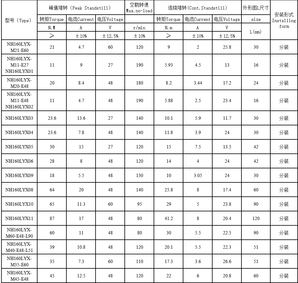 | NH160LYX系列直流力矩電機 |